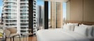 The rooms at NH Collection Frankfurt Spin Tower are inspired by the city of New York. A place to feel relaxed and at home, these wonderful spaces are filled with comforting touches, contrasting textures and elegant design features. In total, 414 rooms are available across 17 floors. The highest rooms are located on the 20th floor. These include an impressive selection of doubles, twins and suites.