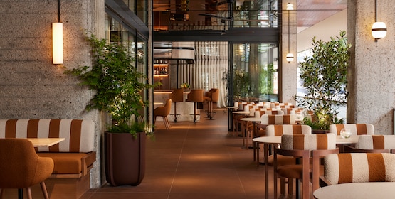 Per il massimo del relax, accomodati sulla spaziosa terrazza dove potrai sorseggiare un drink o mangiare un boccone al Bikini Bar, o goditi una raffinata esperienza gastronomica presso il Casa de Comidas by Rafa Zafra o al DiverXo.