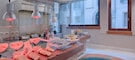 La colazione a buffet propone ogni mattina una varietà di dolci, yogurt, frutta, cereali, formaggi e salumi, oltre a piatti caldi disponibili su ordinazione.