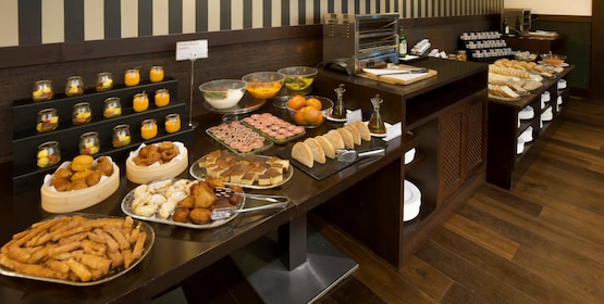 La nostra colazione a buffet viene preparata ogni mattina e offre paste fresche, uova cucinate secondo le tue preferenze, succhi di frutta freschi, salumi, yogurt, una varietà di pane e molto altro. L'offerta comprende anche piatti privi di glutine. Puoi ordinare piatti caldi cucinati secondo le tue preferenze; il nostro angolo andaluso offre prelibatezze regionali per la colazione di tutti i giorni.